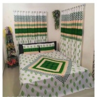 Printed Bed Sheet SetColor : Green, BlueFabric : Tweed* Bed sheet - 1 pcs * Cushion Cover : 2 pcs* Curtains : 4 pcs